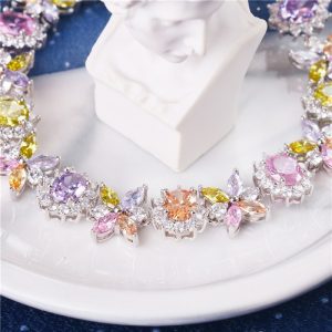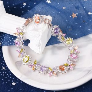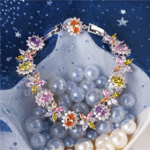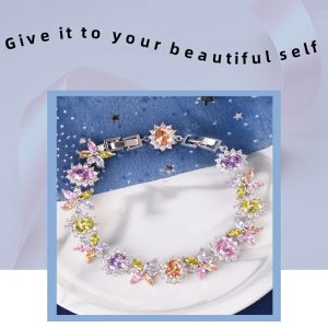 Creative multi-color flower shape bracelet fashionable copper zircon ladies bracelet beautiful and elegant