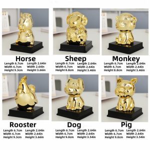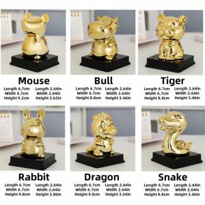 Golden zodiac fortune-attracting small ornaments handmade clay ceramic ornaments mouse bull tiger rabbit dragon snake horse sheep monkey rooster dog pig clay ceramic crafts symbol of wealth and good luck