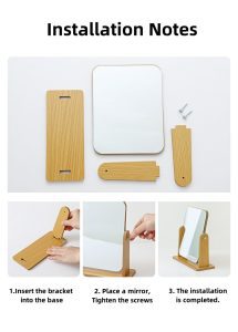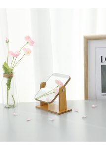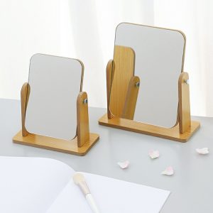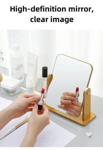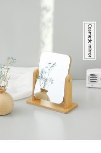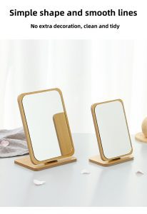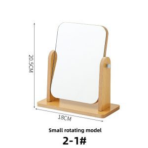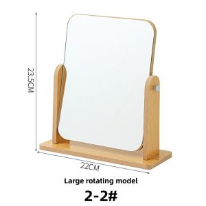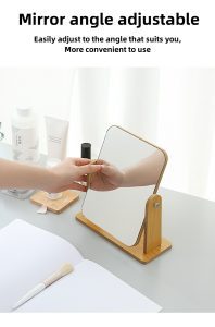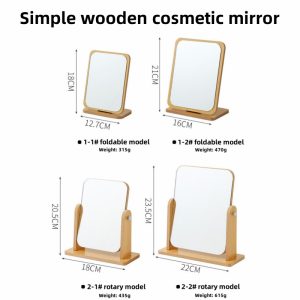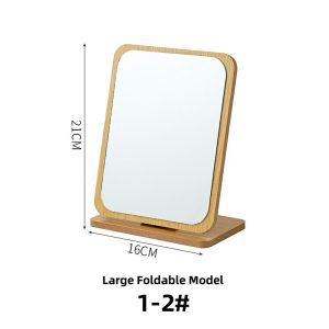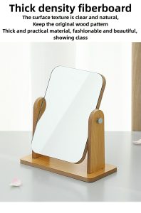 Simple wooden makeup mirror desktop folding makeup mirror rotating desktop makeup mirror high-definition makeup mirror portable mirror angle adjustable square mirror beauty mirror
