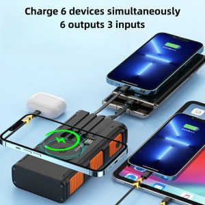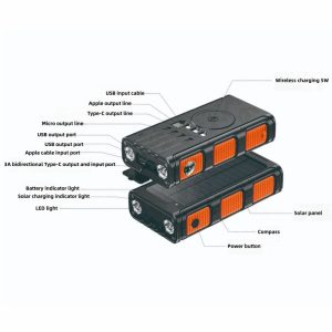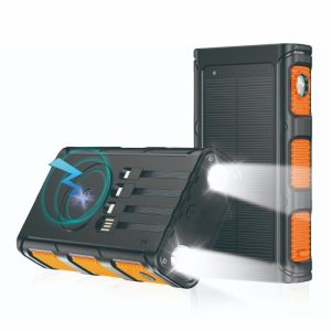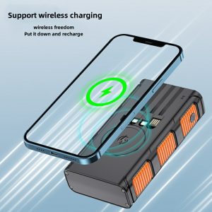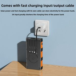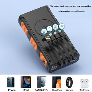 Solar power bank comes with 4 charging lines and wireless charging power bank PD20W fast charging 10000mAh-20000mAh-30000mAh optional