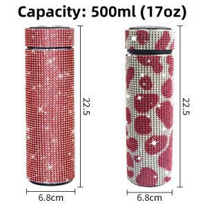 1 review for Thermos Cup Cold Cup Diamond 500ml (17oz) Stainless Steel Straight Thermos Cup Smart Thermos Cup Straight Cup LED Temperature Display Water Cup Home Office Portable Large Capacity Car Cup With Stainless Steel Filter Vacuum Cup Diamond Stainless Steel Straight Thermos Cup